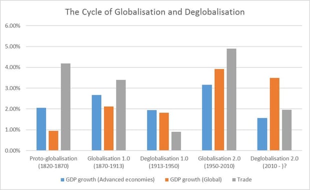 The Guardian's Economics Blog is declaring that "globalisation is already dead" and that we are now entering a period of de-globalisation - It's too late for hand-wringing – globalisation is already dead.
